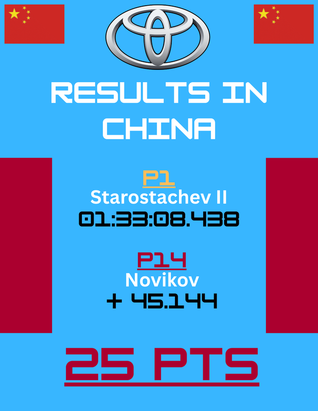 Driver Dmitry Starostachev II closed out the race in a spectacular first place, his fourth time doing so in his career, from a stunning P2 start in qualification. Starostachev's pace in this session was nothing short of phenomenal, and his result has done well to keep Toyota in the title fight.